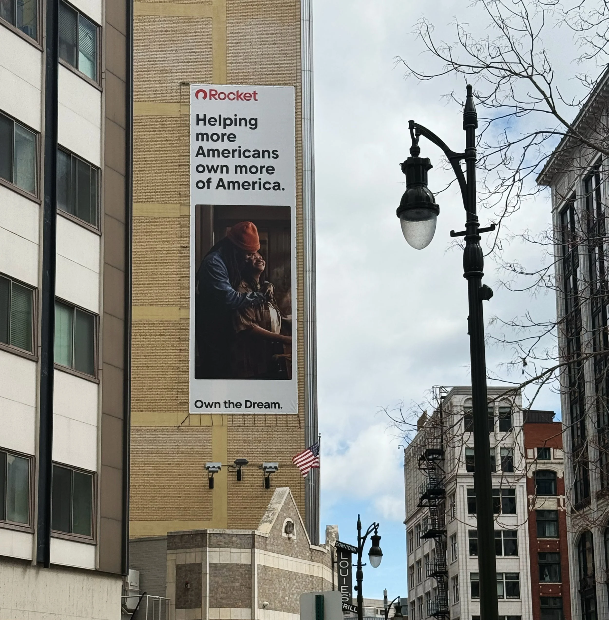 The first was a teaser, timed ahead of Rocket’s Super Bowl LIX commercial, with the line: "Detroit put America in cars, now we're putting America in homes." Once the commercial aired during Super Bowl LIX, the teaser was replaced with the second billboard, unveiling Rocket’s new brand tagline: "Own the Dream." The updated design reflected the fresh brand identity and mission, signaling a powerful evolution for Rocket Mortgage on a national stage.